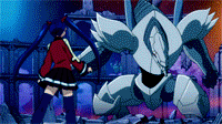 i przy tym pojawiają się dwa ogniste miecze, które atakują dany cel wskazany palcem przez Mystery.